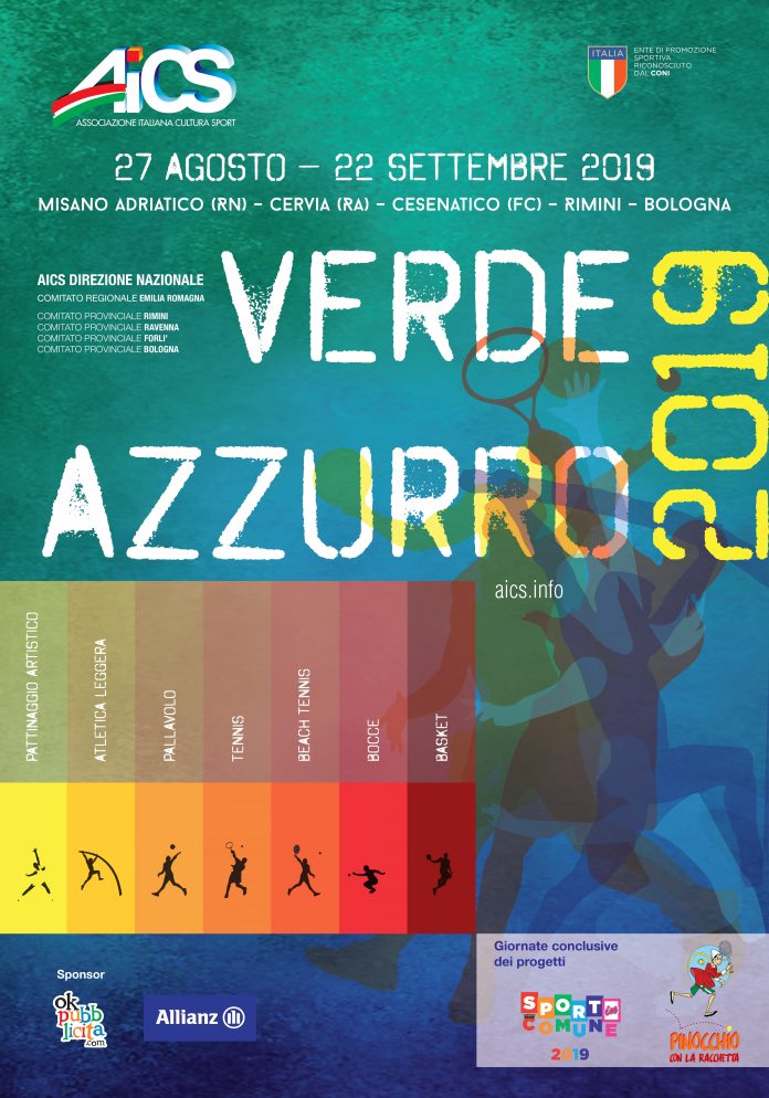 Torna sulla riviera romagnola e a Bologna, dal 27 agosto al 22 settembre prossimi, Verde Azzurro, il grande evento multi sportivo di AiCS di fine estate. Giunto alla sua 33esima edizione, Verde Azzurro riassume in sé i campionati nazionali AiCS di pallavolo, atletica leggera (con il Memorial dedicato a Pietro Mennea), pattinaggio artistico, tennis, beach tennis, bocce, basket, le esibizioni di power lifting e lo stage di karate “integrato” aperto contemporaneamente ai bambini con disabilità e bambini normodotati. L’evento – che si dislocherà tra Cervia, Cesenatico, Rimini e Misano Adriatico – sarà arricchito da corsi di formazione sul management sportivo e da due incontri formativi sulla chiusura del progetto sociale nazionale AiCS del 2019 e l’avvio di quello nuovo riservato ai figli dei nuclei familiari a rischio disagio. Oltre 5mila gli atleti attesi. Il campionato di basket, a fine settembre, si terrà invece a Bologna.