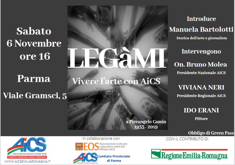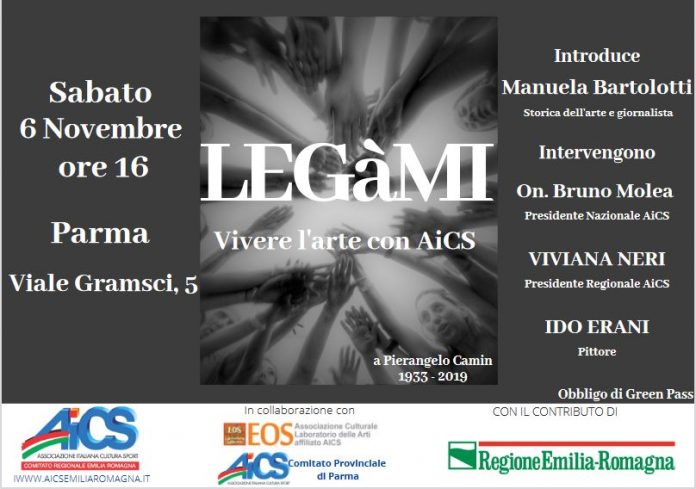Cinquanta artisti insieme per ricostruire attraverso l’arte i “Legàmi” di cui oggi più che mai tutti abbiamo bisogno: fotografie, dipinti e sculture per consegnare alla cittadinanza il concetto di arte come condivisione e per ricordare insieme Pierangelo Camin, dirigente AiCS scomparso nel 2019, e tra i padri fondatori della Protezione civile e del volontariato a Parma. La collettiva d’arte, visitabile al pubblico dal 7 al 20 novembre (i lunedì, mercoledì, venerdì dalle 10 alle 12 e dalle 16 alle19, e nel week end dalle 16 alle 19) negli spazi dell’associazione Eos, in viale Gramsci 6 a Parma, inaugurerà sabato 6 novembre alle 16 alla presenza delle autorità: la mostra è promossa dal comitato regionale di AiCS – Associazione italiana cultura sport, tra i primi enti di promozione sportiva e culturale del Paese – e all’inaugurazione saranno presenti il presidente nazionale di AiCS, Bruno Molea, la presidente di AiCS Emilia Romagna Viviana Neri, e il pittore di fama internazionale Ido Erani che alla collettiva ha donato il suo affresco “Maternità”. La mostra, che unisce artisti amatoriali a pittori di fama nazionale, è organizzata in collaborazione con il laboratorio artistico Eos e con AiCS Parma, e con il contributo della Regione Emilia Romagna.