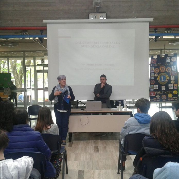 ltre 100 alunni delle classi seconde del Liceo Scientifico della città hanno partecipato all’incontro con lo psicologo scolastico Andrea BilottoIl 97% dei ragazzi tra gli 11 e i 19 anni ha un telefono cellulare, il 75% di questi ha un profilo Instagram, quasi la metà di loro sta connesso almeno 4 ore al giorno, ma ben il 17% lo è sempre, dalla mattina alla sera. Una fotografia della realtà preoccupante quella scattata mercoledì 11 aprile a Forlì da Andrea Bilotto, psicologo scolastico intervenuto alla conferenza pubblica voluta dal comitato Aics di Forlì-Cesena all’interno del progetto sociale “Adolescenze competenti” e organizzata in collaborazione con il Lions Club Forlì Host. All’incontro – tenuto al Liceo Scientifico cittadino, il “Fulceri Paulucci Di Calboli” – hanno partecipato ben 120 ragazzi delle classi seconde, che si sono dimostrati molto interessati al tema.