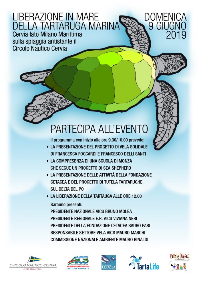 Grande festa, il prossimo 9 giugno al circolo nautico di Cervia, per la liberazione in mare di una delle tartarughe marine salvate nell’ambito del progetto TartaLife, al quale Acs partecipa come “sentinella” a supporto delle tartarughe ferite. L’appuntamento al circolo nautico è per le 9.30: nel corso della mattinata, verrà presentato il progetto Vela Solidale, per saranno presentati i risultati dell’attività della Fondazione Cetacea e del progetto di tutela delle tartarughe sul Delta del Po, sempre in collaborazione con Aics. La tartaruga salvata verrà liberata in mare alle 12. Saranno presenti: il presidente nazionale di Aics Bruno Molea, la presidente regionale Viviana Neri, il presidente della Fondazione Cetacea Sauro Pari, il responsabile del settore vela di Aics Mauro Marchi e Mauro Rinaldi, della commissione nazionale ambiente di Aics.