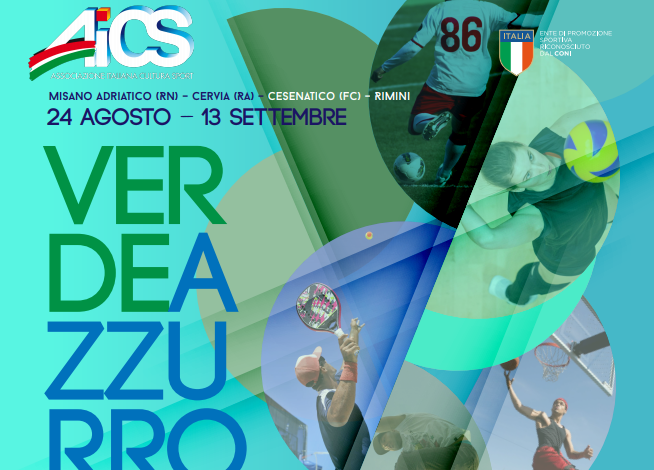 Torna sulla riviera romagnola VerdeAzzurro! Un’edizione ridotta e riformulata dall’emergenza Covid, ma AiCS non farà comunque mancare l’appuntamento con l’evento multi sportivo più atteso dell’anno: appuntamento da fine agosto a metà settembre sulla Riviera romagnola con i campionati AiCS. Si parte dal 24 agosto con i campionati di pattinaggio freestyle e di pattinaggio artistico, per poi passare ai campionati di pallavolo, calcio, tennis (Coppa delle province), beach tennis e sand basket.