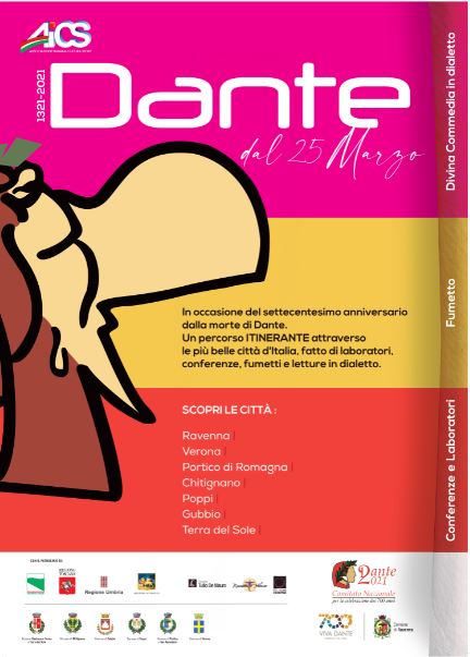 In occasione dei 700 anni dalla morte del Poeta, l’Associazione italiana Cultura Sport propone un progetto nazionale di divulgazione storica e culturale attorno alla figura di Alighieri e dell’Italia del ‘300: conferenze itineranti in 4 regioni, un fumetto per ragazzi e la Divina commedia come non l’avete mai sentita