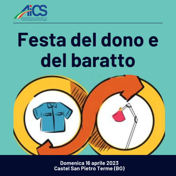 Domenica 16 aprile 2023 dalle ore 10:30 alle ore 17:30, nel cortile dell’ex Asilo Nido in Piazza Galilei a Castel San Pietro Terme (BO) si svolgerà la festa del dono e del baratto, iniziativa promossa dall’ associazione Vivo Sostenibile APS con il Patrocinio del Comune di Castel San Pietro Terme, la collaborazione della Pro Loco di Castel San Pietro Terme e la partecipazione di AICS comitato provinciale di Bologna e AICS Ambiente, all’interno della manifestazione Very Slow Italy, festa delle Cittaslow.