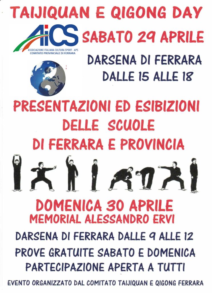 Taijiquan e Qigong days: Sabato 29 aprile dalle 15 alle 18 e domenica 30 aprile dalle 9 alle 12, le scuole di Taijiquan e Qigong provenienti da tutta la provincia di Ferrara si presenteranno e si esibiranno nelle rispettive discipline, nella cornice della Darsena della Città.
