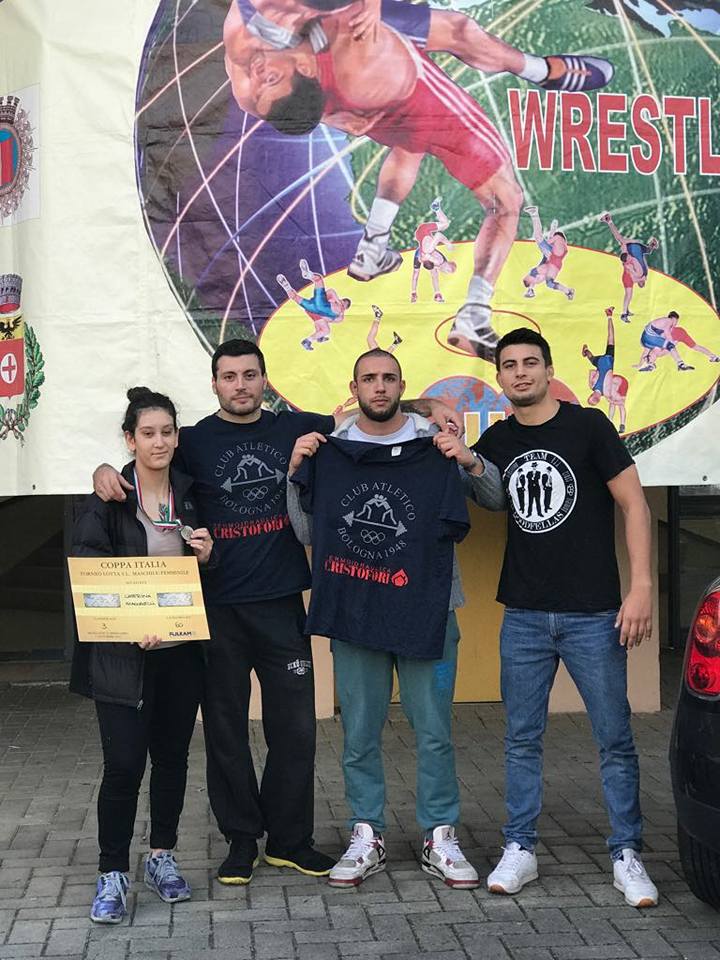 Continua a crescere il livello del team bolognese di lotta libera, affiliato ad Aics. Alla Coppa Italia svoltasi a Mozzanica (Bergamo) Caterina Giacomelli si aggiudica il bronzo nella categoria 60 Kg femminile mentre brillano e convincono Federico Palmieri nella difficile categoria 86 kg e Gianmarco Gherla nella categoria 74 kg che giungono entrambi al settimo posto nelle rispettive categorie. Ottima partenza per Palmieri che domina il primo incontro, ma nella seconda lotta trova il forte atleta azzurro Francesco Rosati contro il quale avvia un incontro serrato ma è costretto a cedere di poco, al più smaliziato ternano che si aggiudicherà l’argento. Palmieri si consolerà successivamente, vincendo l’incontro di ripescaggio. Migliora anche Gianmarco Gherla che vince il primo incontro per superiorità tecnica e successivamente incontra il sassarese Alessandro Usai che si aggiudicherà il bronzo e con il quale commette qualche leggerezza di troppo perdendo un incontro che gli servirà come esperienza. Soddisfatto l’allenatore del CAB Lorenzo Spoto che ha dimostrato di avere atleti competitivi anche ad alti livelli.