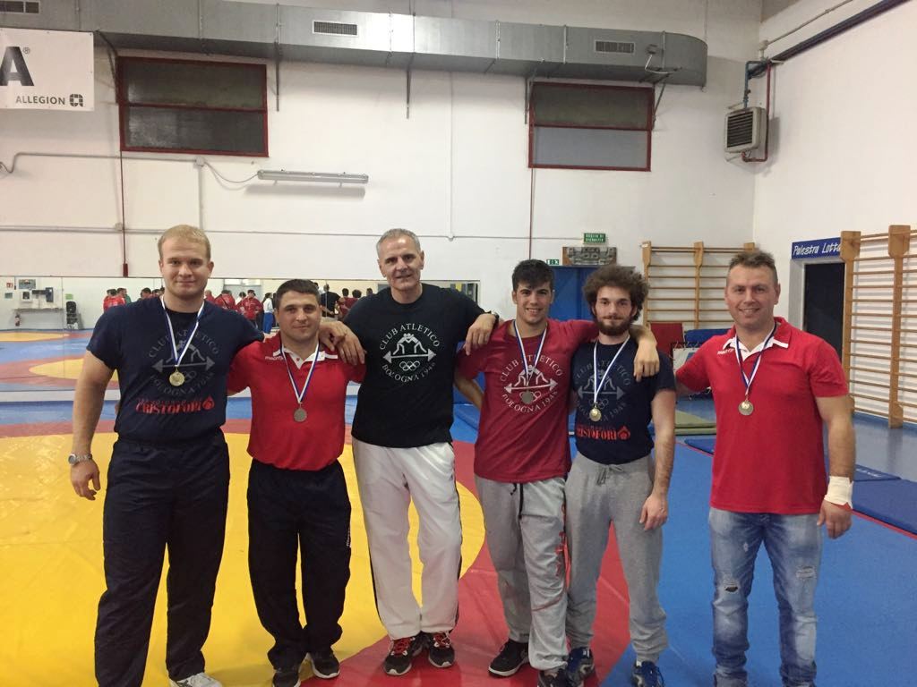 Tutti sul podio i lottatori del C.A.B. a Faenza, al Campionato regionale assoluto 2017: Egor Krasilnikov vince due incontri e si aggiudica l’oro nella categoria supermassimi (130 kg). Poi tre medaglie d’argento rispettivamente con il capitano allenatore Dumitru Popov nella difficile categoria 80 kg, Mario Tudor cat 98 kg e Simone Pivi cat 75 kg. A completare la bella trasferta nella culla della lotta olimpica, il bronzo di Enrico Gulino nella cat 59 kg. Club Atletico Bologna squadra quinta classificata.