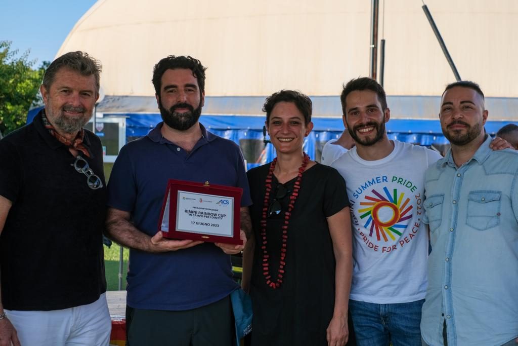 Grande partecipazione delle istituzioni e del mondo associativo all’evento con la presenza Assessore allo sport comune Rimini Moreno Maresi; Presidente Arcigay Rimini e Consigliere comunale di Rimini Marco Tonti, Responsabile del progetto “Istanti” AICS Diletta Cigolini, Responsabile dell’organizzazione del Torneo e referente Sport Arcigay Rimini Matteo Onnis, Delegato del Comitato Provinciale AICS Rimini e Responsabile Nazionale area Sociale del Dipartimento LGBTI AICS Gabriel Corbelli.